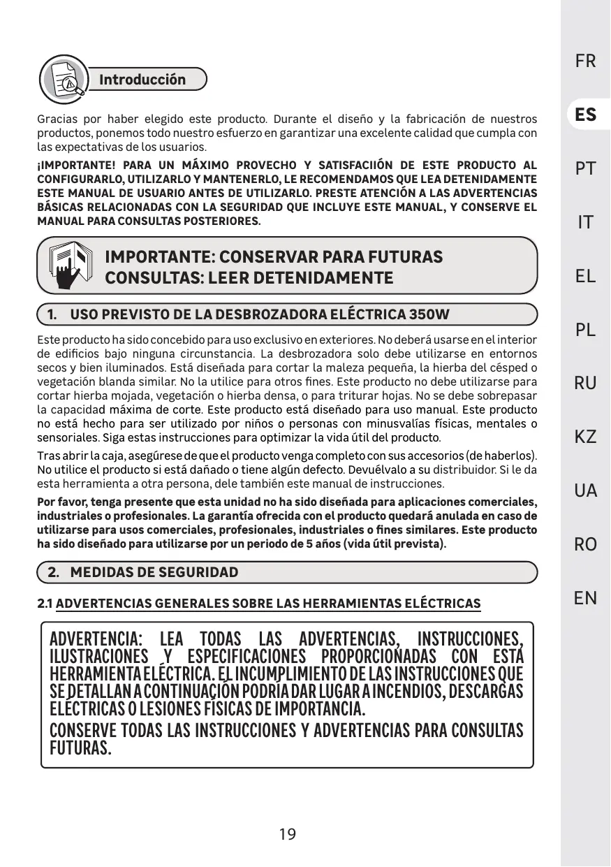 EGT2-25.4 - Cortadora de césped STERWINS - Manual de uso y guía de instrucciones gratis