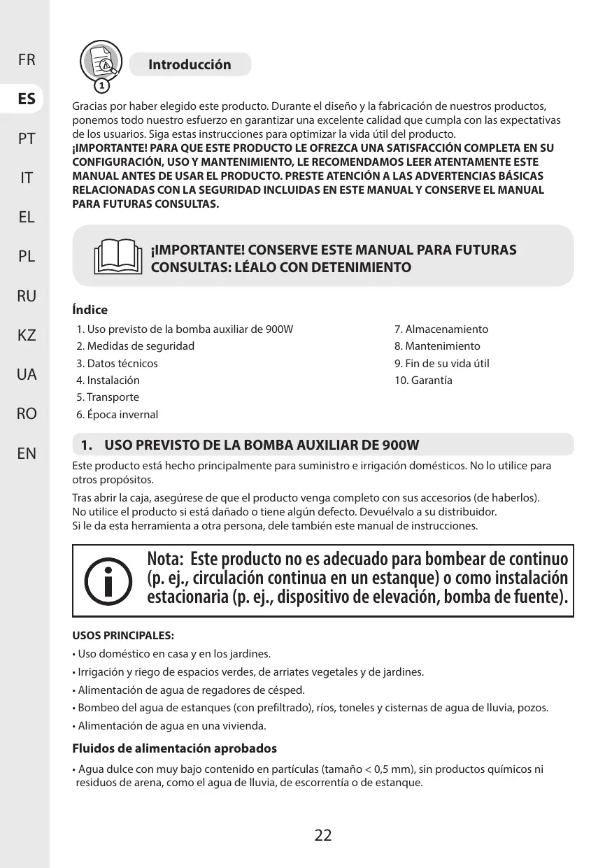 + El motor cuenta con un termostato incorporado que lo protege de posibles sobrecalentamientos. En caso de producirse un sobrecalentamiento, el termostato desactiva automäticamente la bomba. La bomba volverä a ponerse en marcha de forma automätica una vez que se haya enfriado lo suficiente.