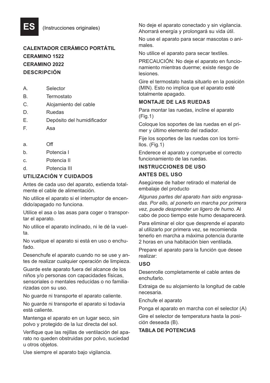 Encuentra gratis el manual del aparato CERAMDUO 1522 - CERAMINO 2022 SUPRA en formato PDF.