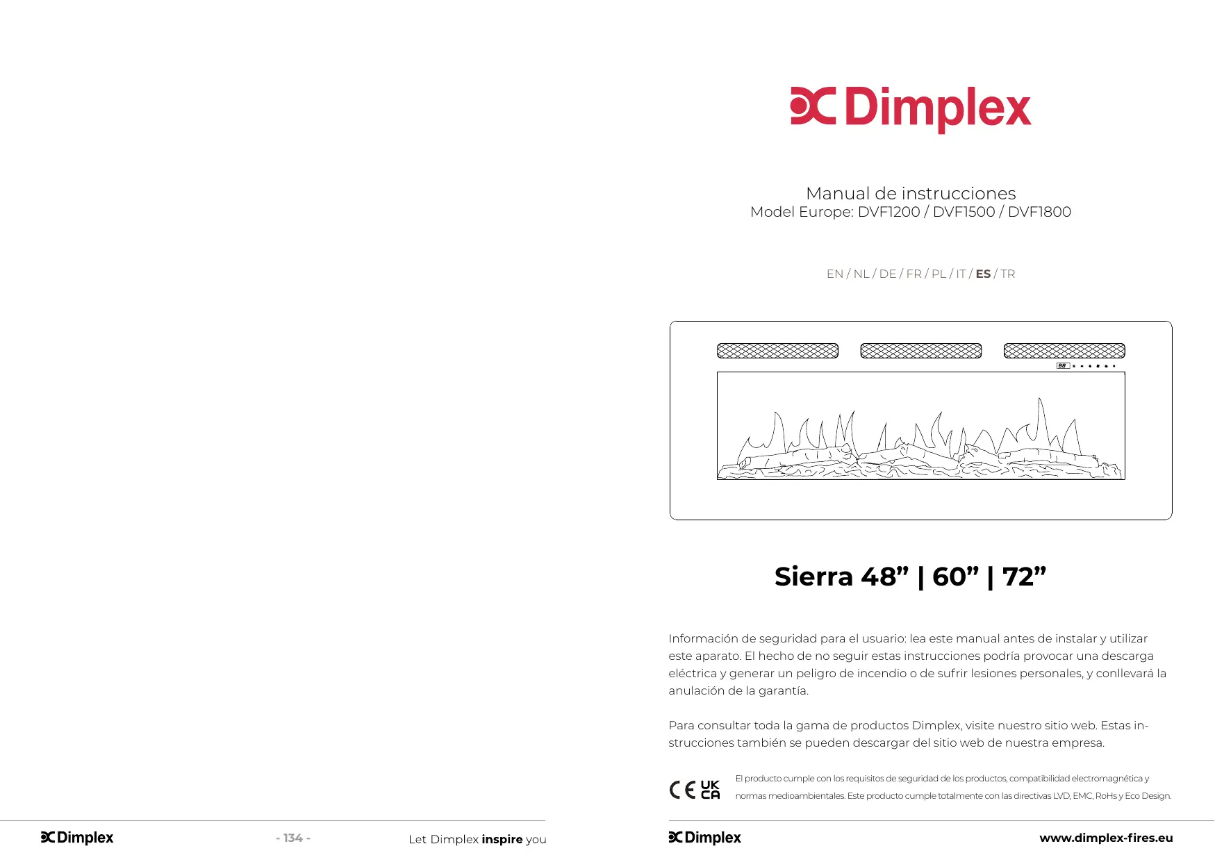 DVF1200 / DVF1500 / DVF1800, DVF1200-UK / DVF1500-UK / DVF1800-UK - Chimenea electrica DIMPLEX - Manual de uso y guía de instrucciones gratis