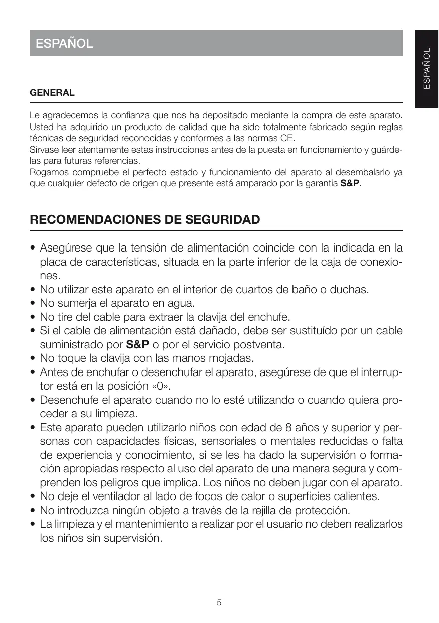 ARTIC-255N GR ARTIC-305N GR EB-100 EB-250 ARTIC-405N GR - Admirador S&P - Manual de uso y guía de instrucciones gratis
