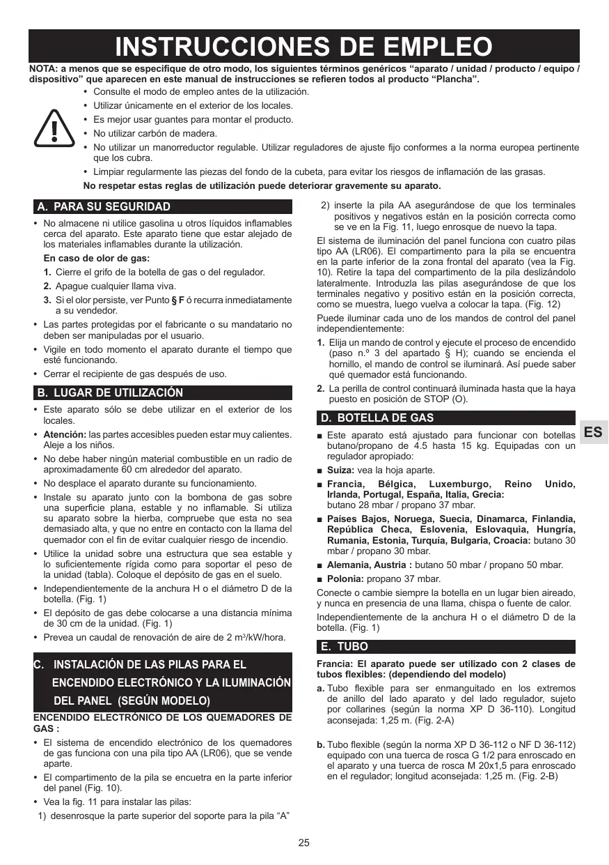 D. BOUTEILLE DE GAZ Cet appareil est réglé pour fonctionner avec les