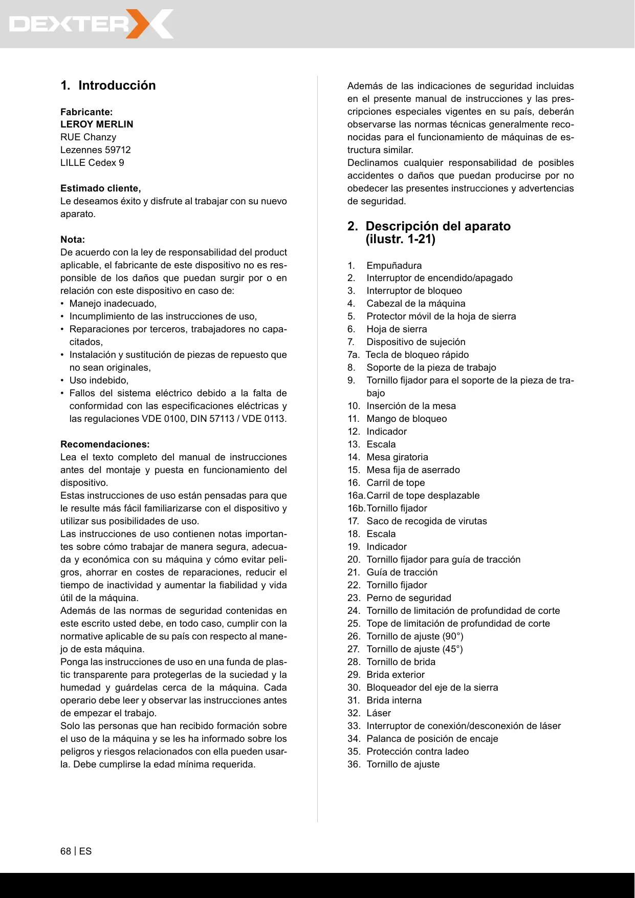 DX216 - Sierra ingletadora DEXTER - Manual de uso y guía de instrucciones gratis