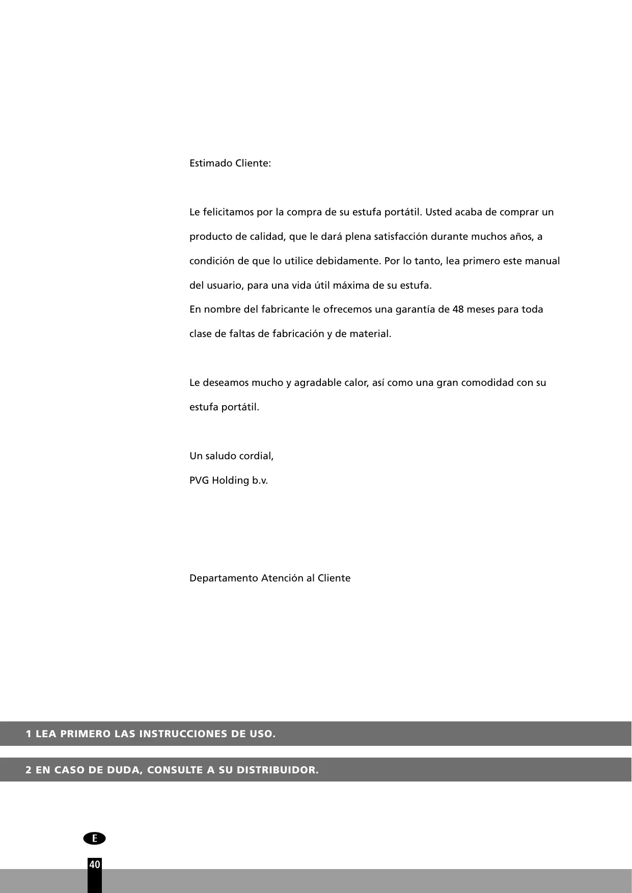 CONDICIONES DE GARANTIA Su estufa estä cubierta por una garantia de 48 meses, a partir de la fecha de compra.