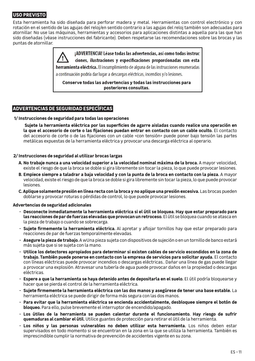 2/ Instructions de sécurité pour l’utilisation de forets longs