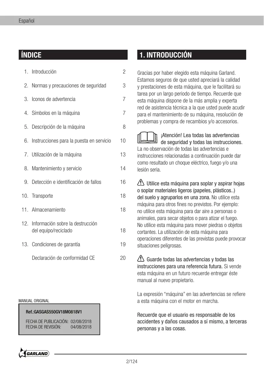 GAS 550 G - Aspirateur souffleur GARLAND - Manual de uso y guía de instrucciones gratis