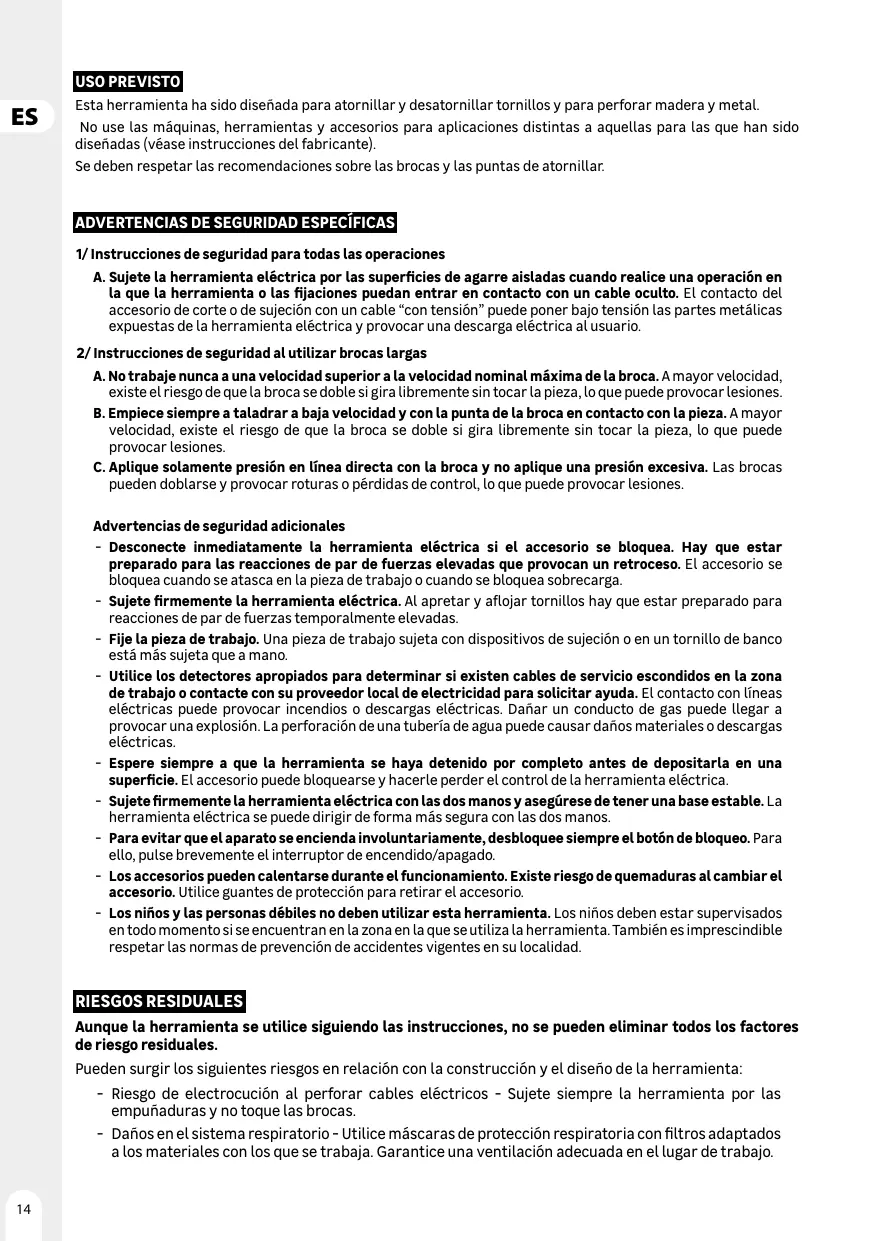 RISQUES RÉSIDUELS Même lorsque l'outil est utilisé conformément aux consignes, il n'est pas possible d'éliminer tous Les facteurs de risques résiduels.