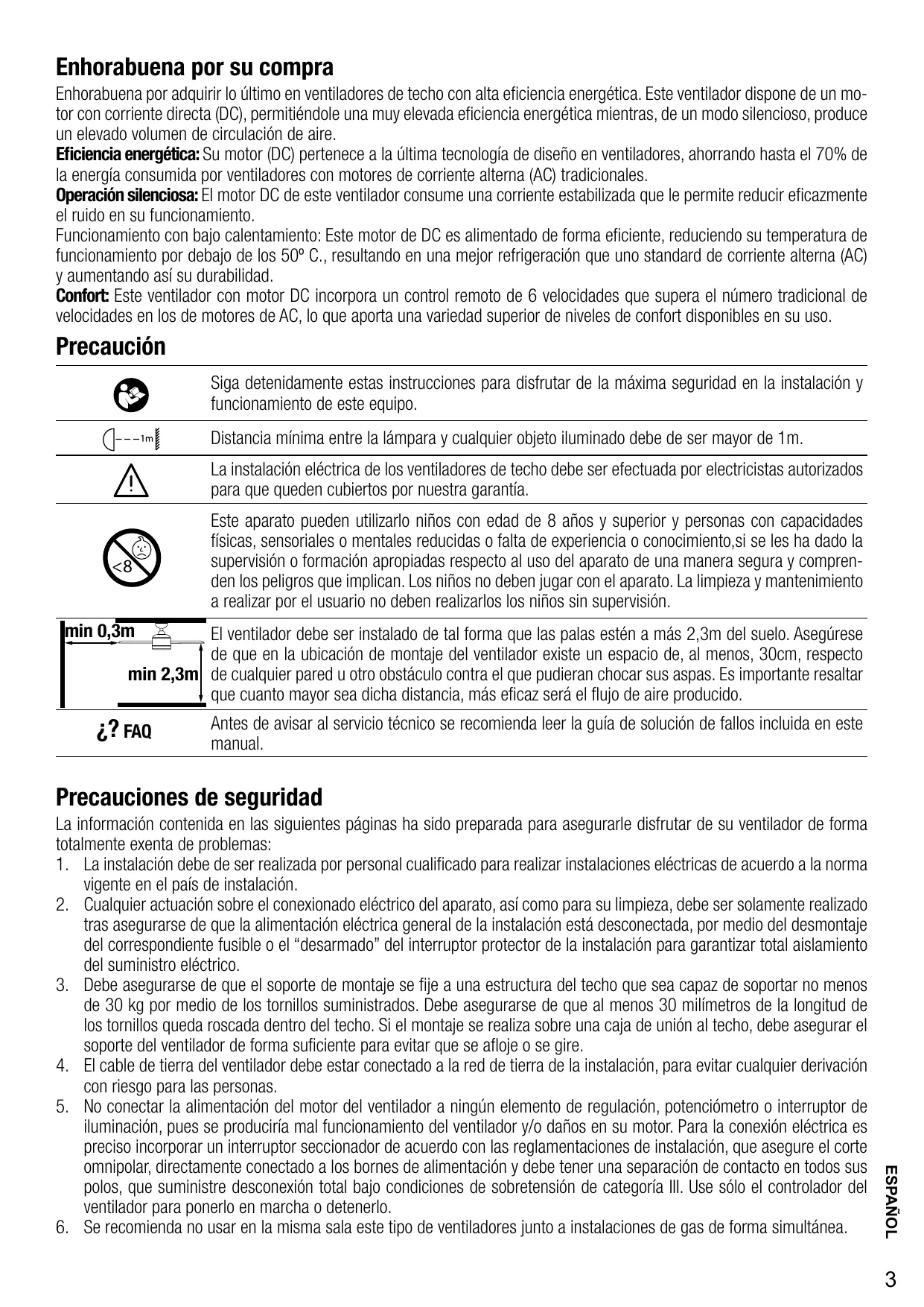 Imin 0,3m ä Le ventilateur doit être installé de telle sorte que les pales soient à plus de 2,3 m du sol. Assu-