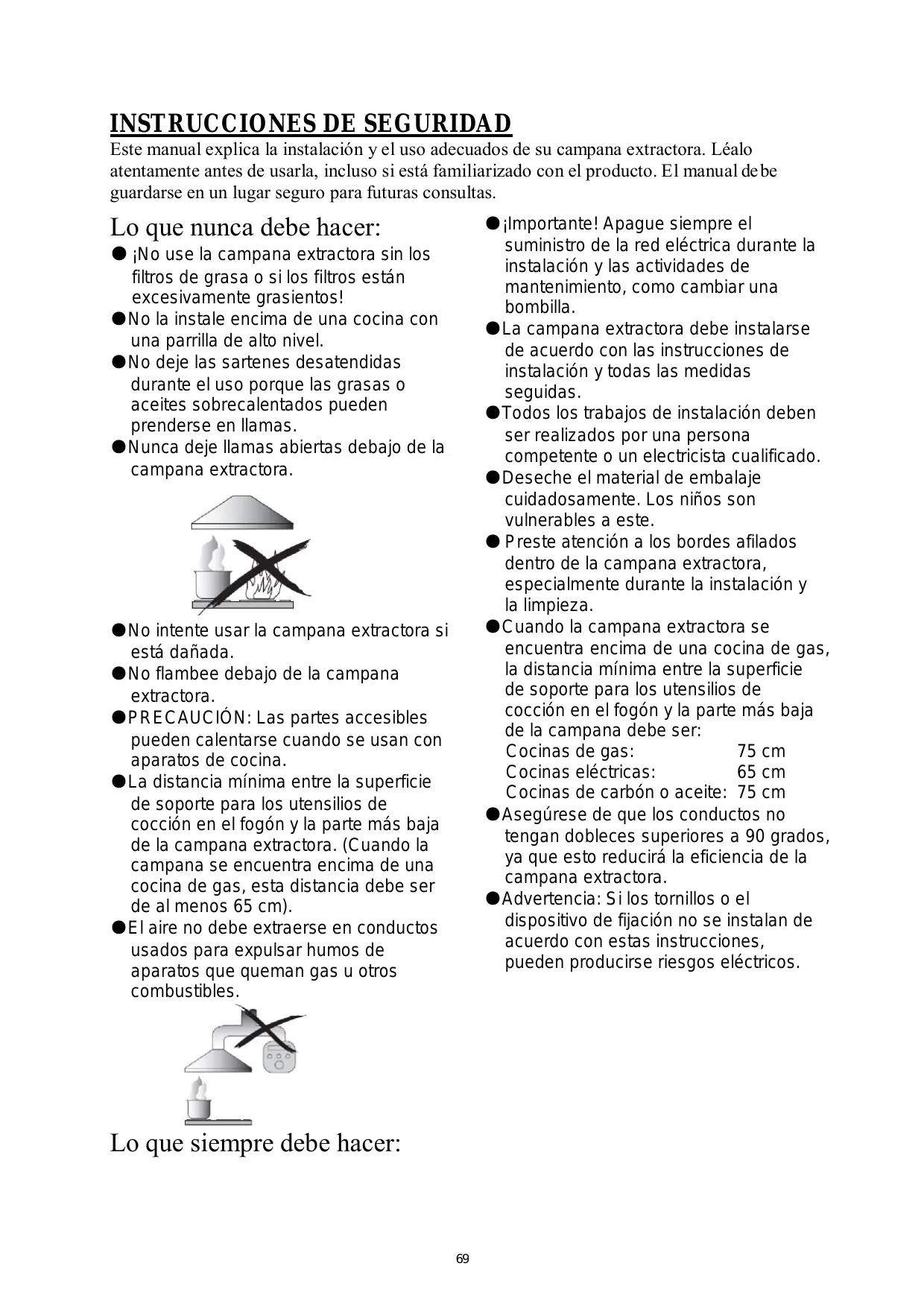 @Quand la hotte aspirante et les appareils alimentés par autre chose que de l'électricité fonctionnent simultanément, la pression négative à l'intérieur de la pièce ne doit pas dépasser 4 Pa (4 x 10-5 bar).