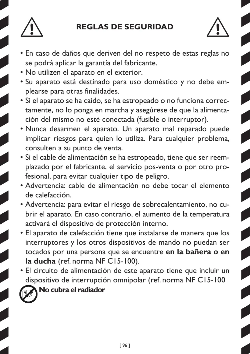 + Ce appareil de chauffage est un appareil de classe Il (double isolation électrique).