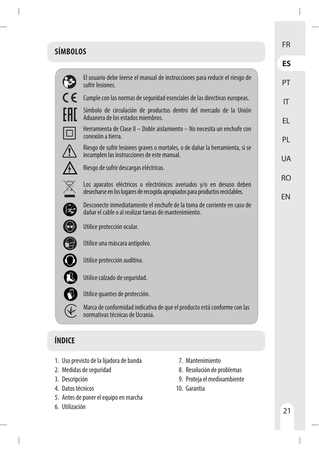 - Ne touchez pas la bande abrasive quand elle est en mouvement.