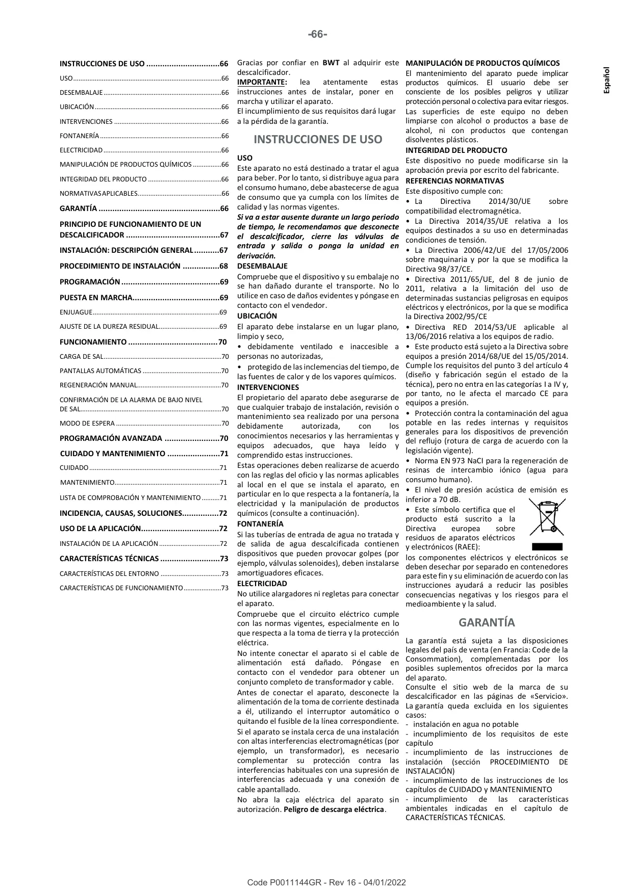A6X - R22 - Ablandador de agua BWT - Manual de uso y guía de instrucciones gratis