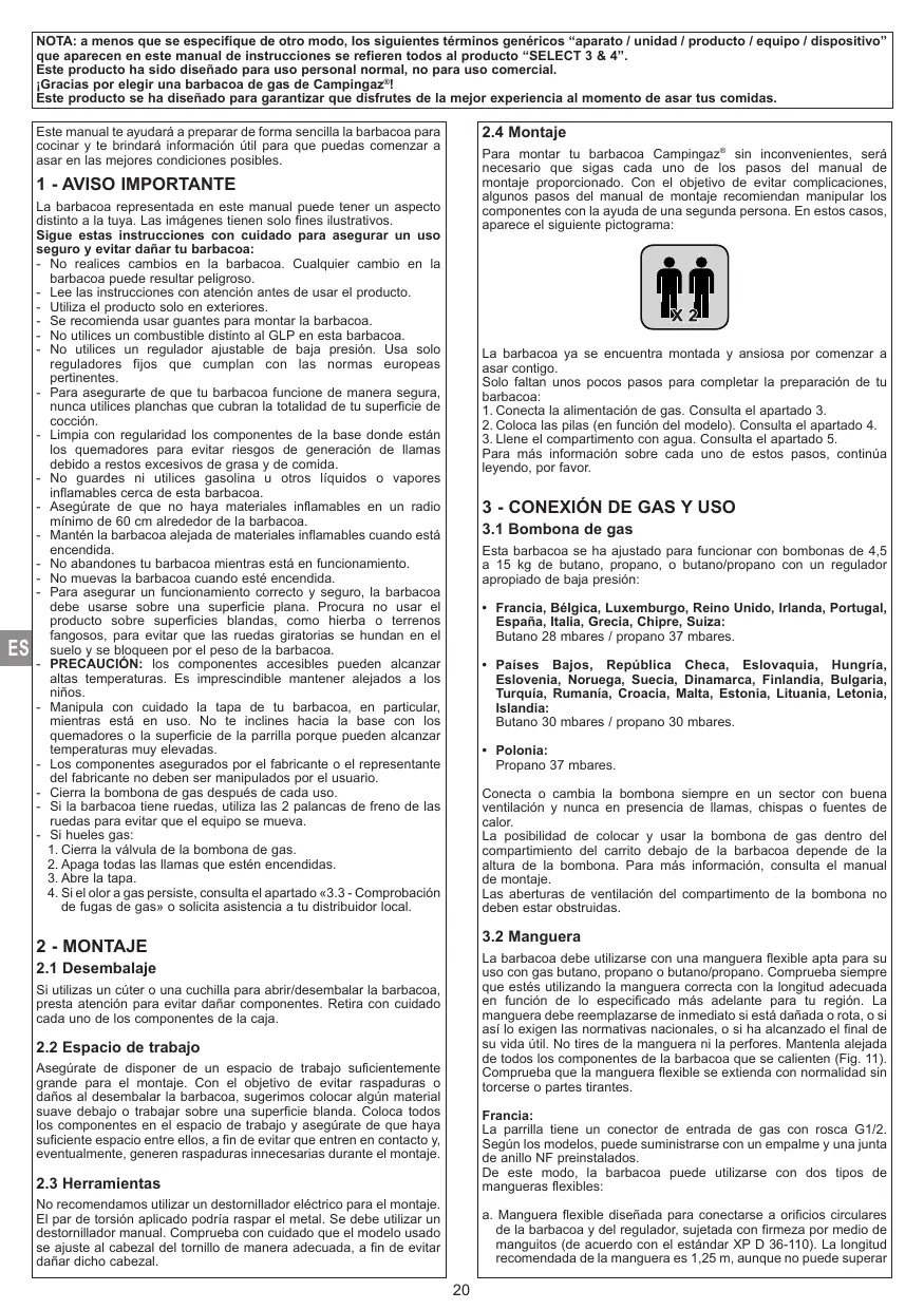 MANUAL DE USUARIO SELECT 3 LX PLUS CAMPINGAZ