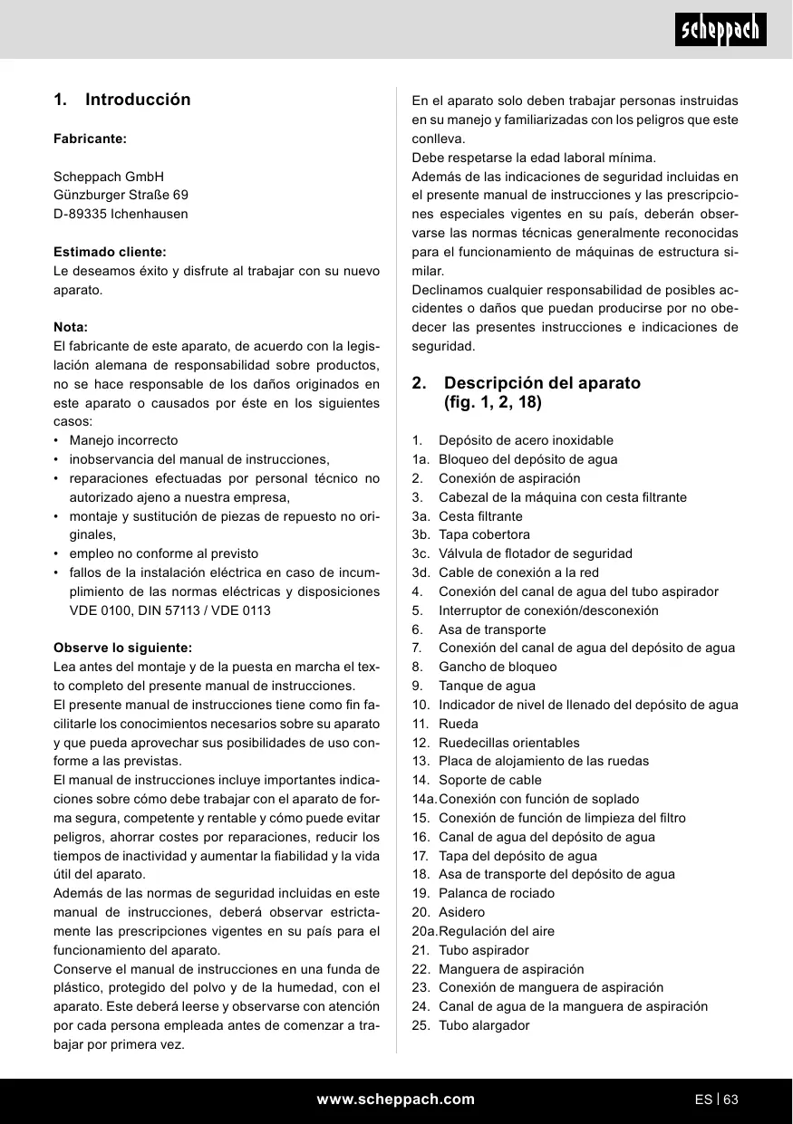 SPRAYVAC20 - Aspiradora SCHEPPACH - Manual de uso y guía de instrucciones gratis