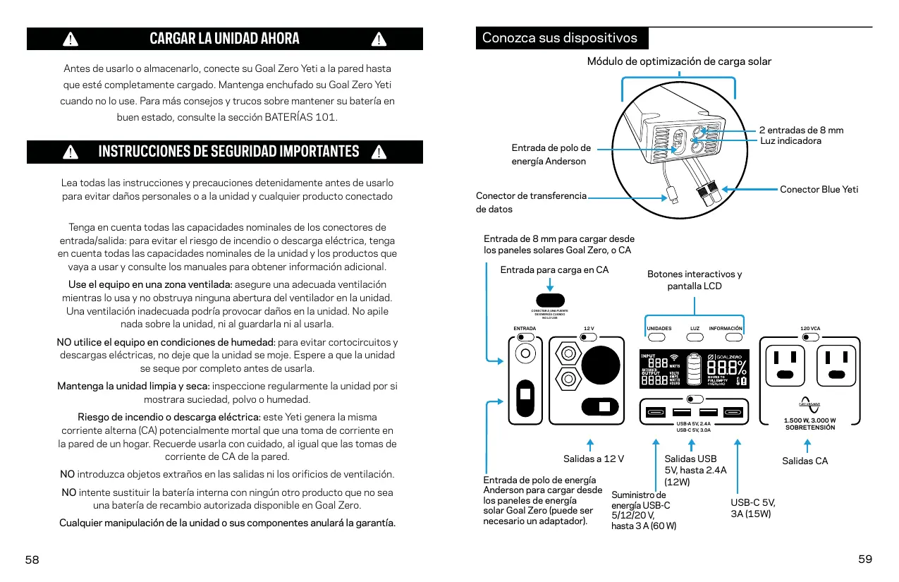 Encuentra gratis el manual del aparato YETI 3000X GOAL ZERO en formato PDF.