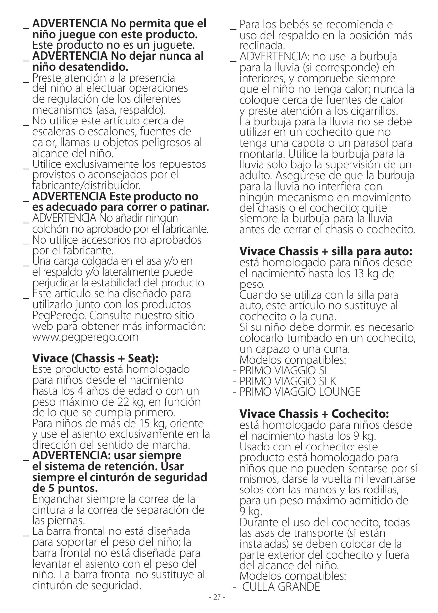Vivace Modular - Cochecito trío PEG PEREGO - Manual de uso y guía de instrucciones gratis