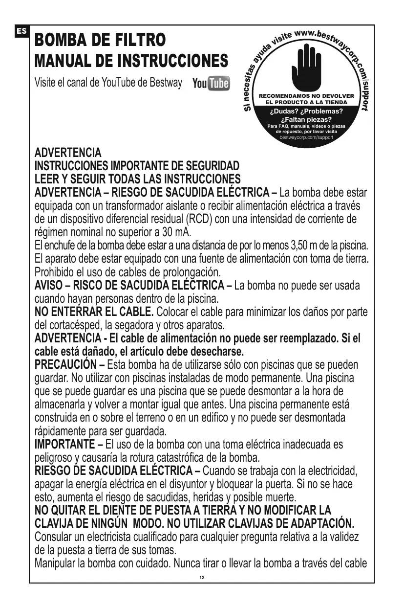 Siles instructions sont manquantes, contactez Bestway ou recherchez sur le site web : www.bestwaycorp.com