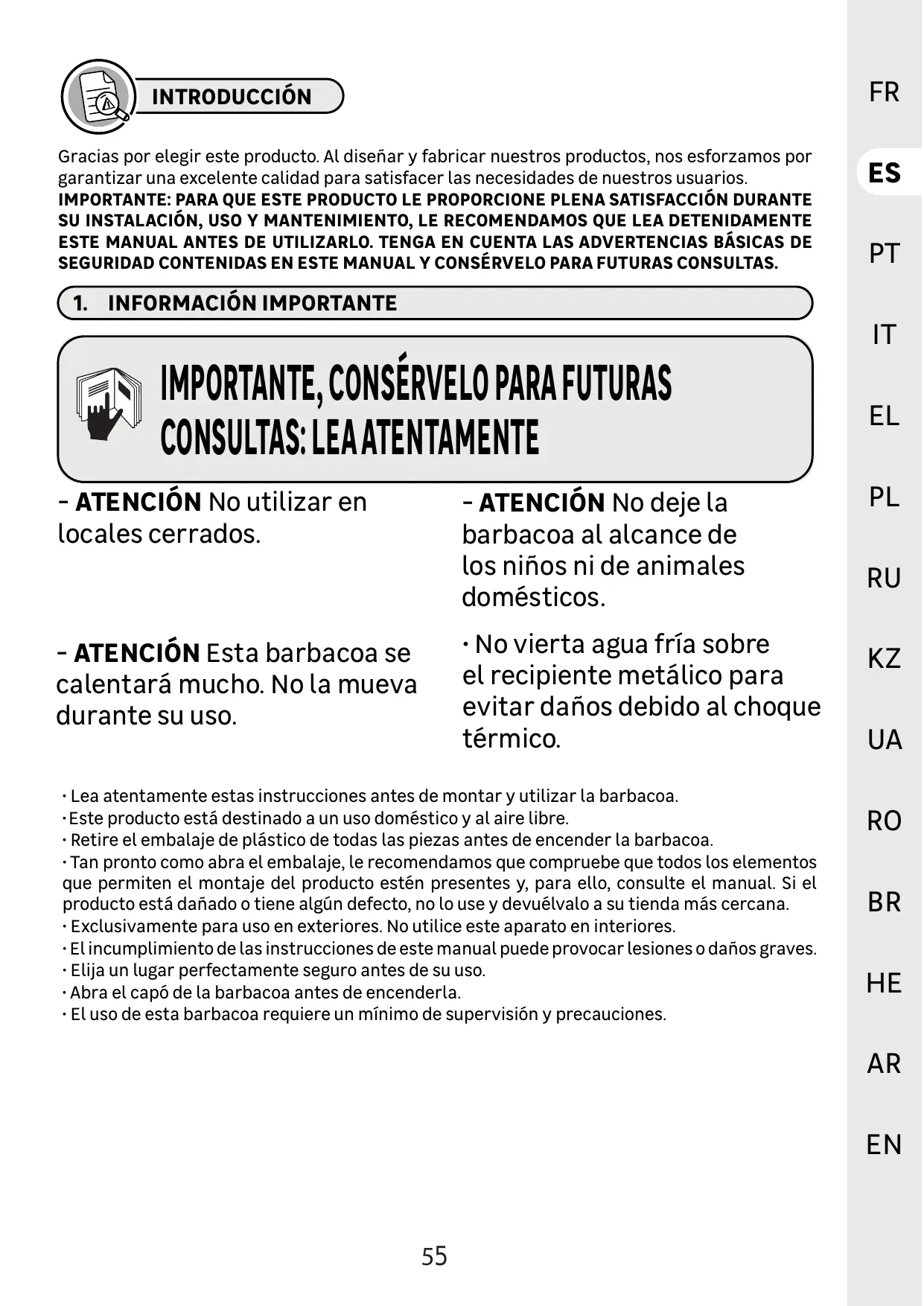 - Certaines parties de ce barbecue deviennent très chaudes. Prenez soin en présence d'enfants, de personnes âgées et d'animaux.