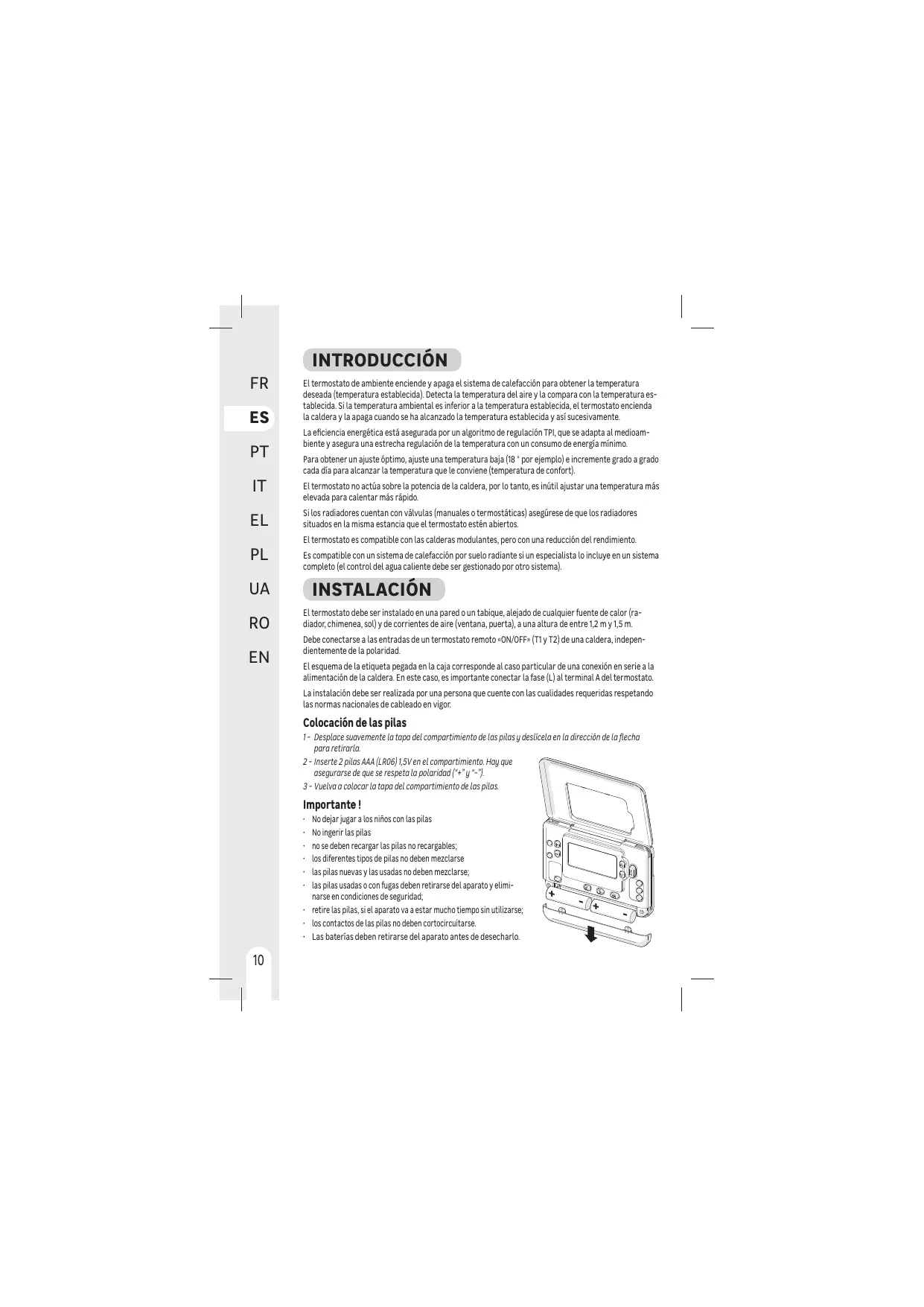 INSTALLATION Le thermostat dot étre installé surun mur ou une cloison, éloigné de toute source de chaleur radiateur cheminée soleil et des courants d'air fenêtre, porte, une hauteur de ,2m à 15m