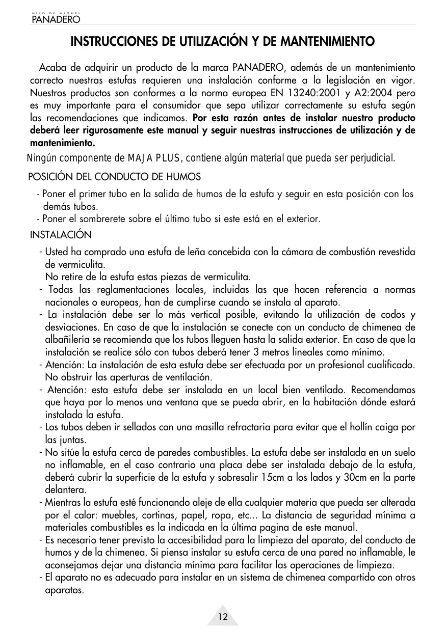 MAJA PLUS - Estufa de leña PANADERO - Manual de uso y guía de instrucciones gratis