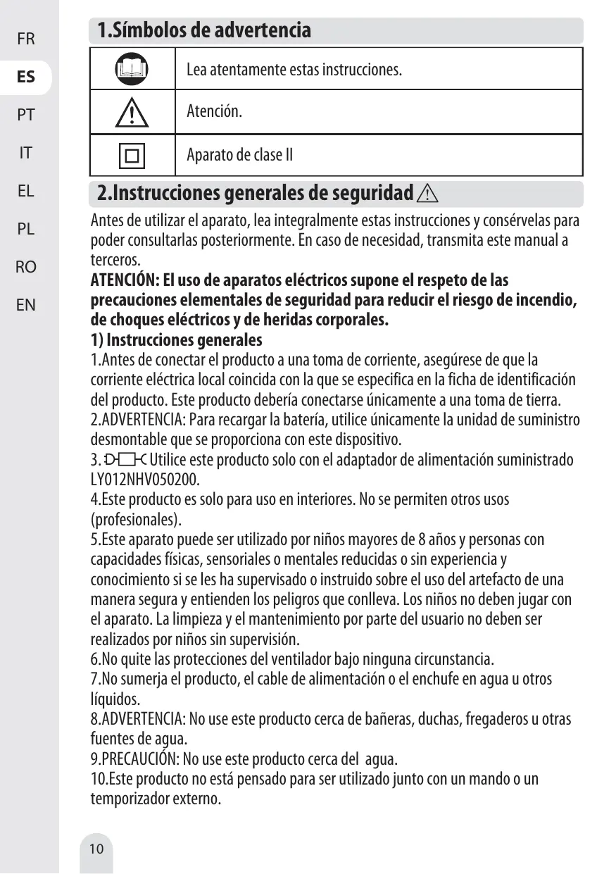SPÉCIFICATION DE L'ADAPTATEUR Nom ou marque du fabricant, numéro Fabricant: Zhongshan City Lianyuan Electron siret et adresse Co.Ltd Adr:#1,2nd Floor Weihai Road,Nantou Town, 528427 Zhongshan City, Guangdong Province, N'utilisez jamais d'essence, de benzène ou tout autre produit chimique pour nettoyer le ventilateur. Ne plongez jamais les pales ou les parties en résine dans une eau à plus de 60°C. Si vous ne l’utilisez pas sur une période prolongée, rangez le ventilateur dans un lieu sec.