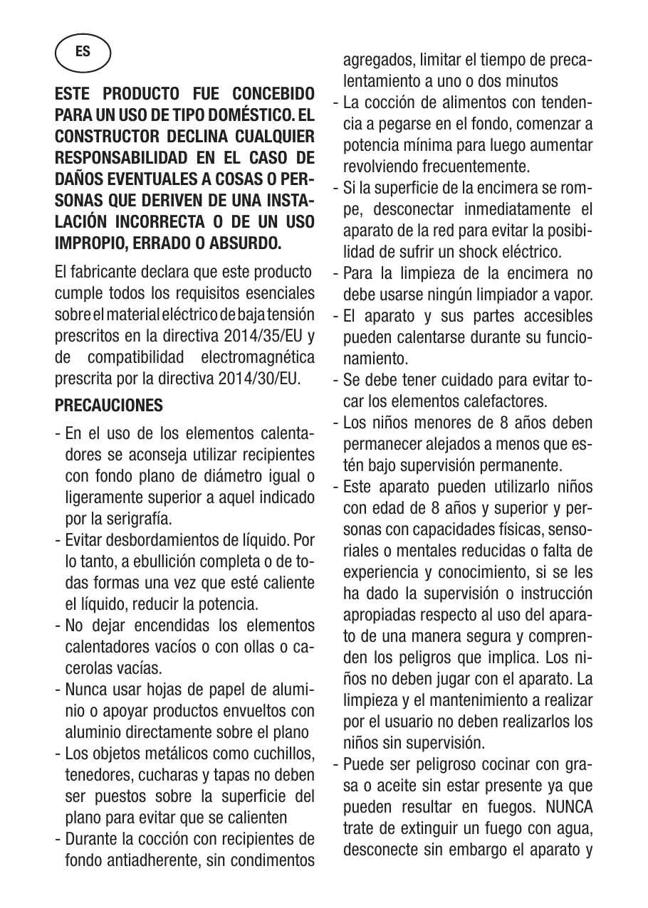 Después de haber apagado la zona de cocciôn, el corres- pondiente display mostrarä “H” hasta que la temperatura de la zona haya descendido por debajo del nivel criico (< 60°C) segün el modelo matemätico.