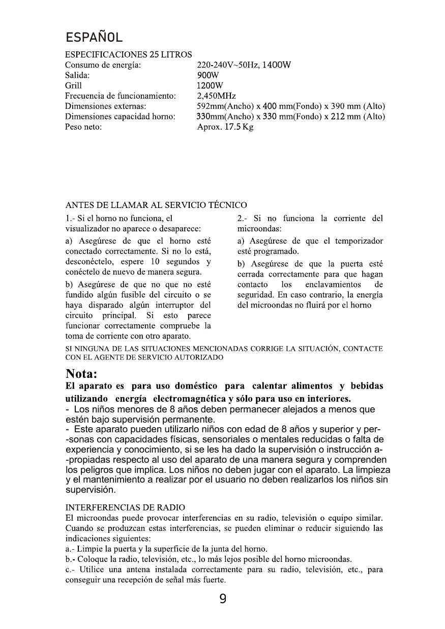 3.- Ce four à micro-ondes pèse 17,5 Kg. Veiller à le positionner sur une surface plane suffisamment résistante pour supporter son poids.