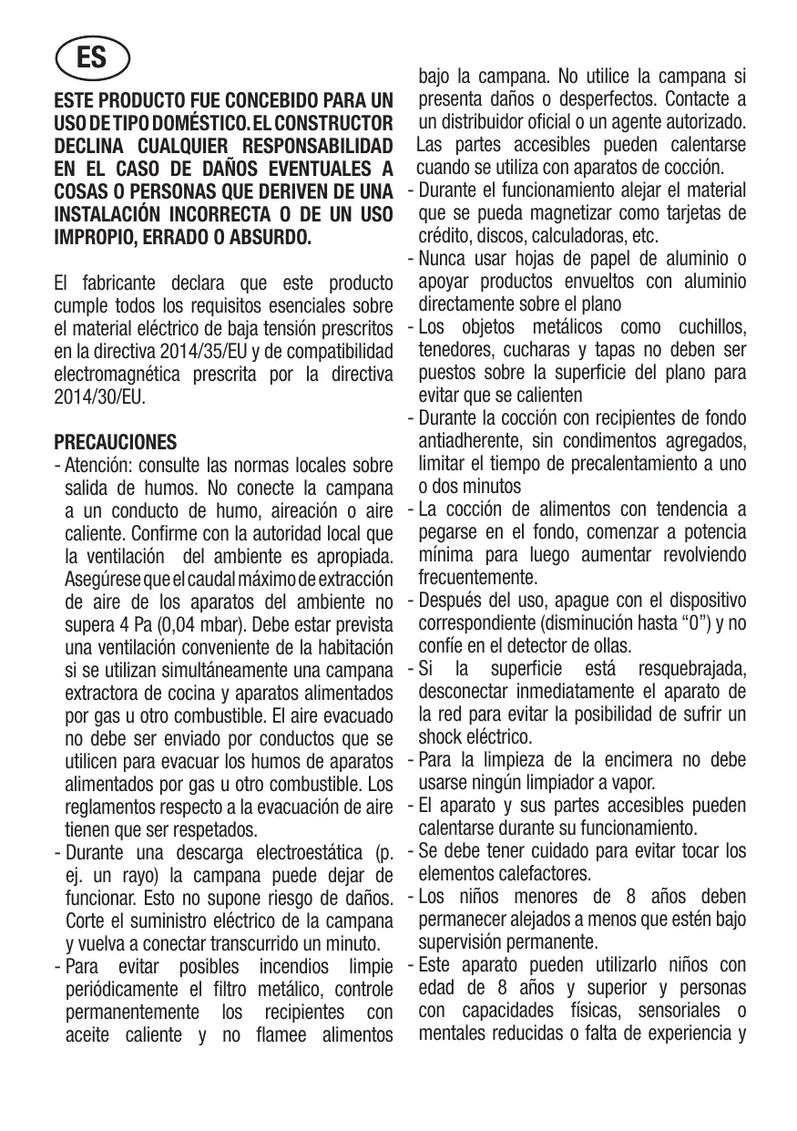 | Características técnicas principales | Campana de pared, extracción o reciclaje, motor potente |