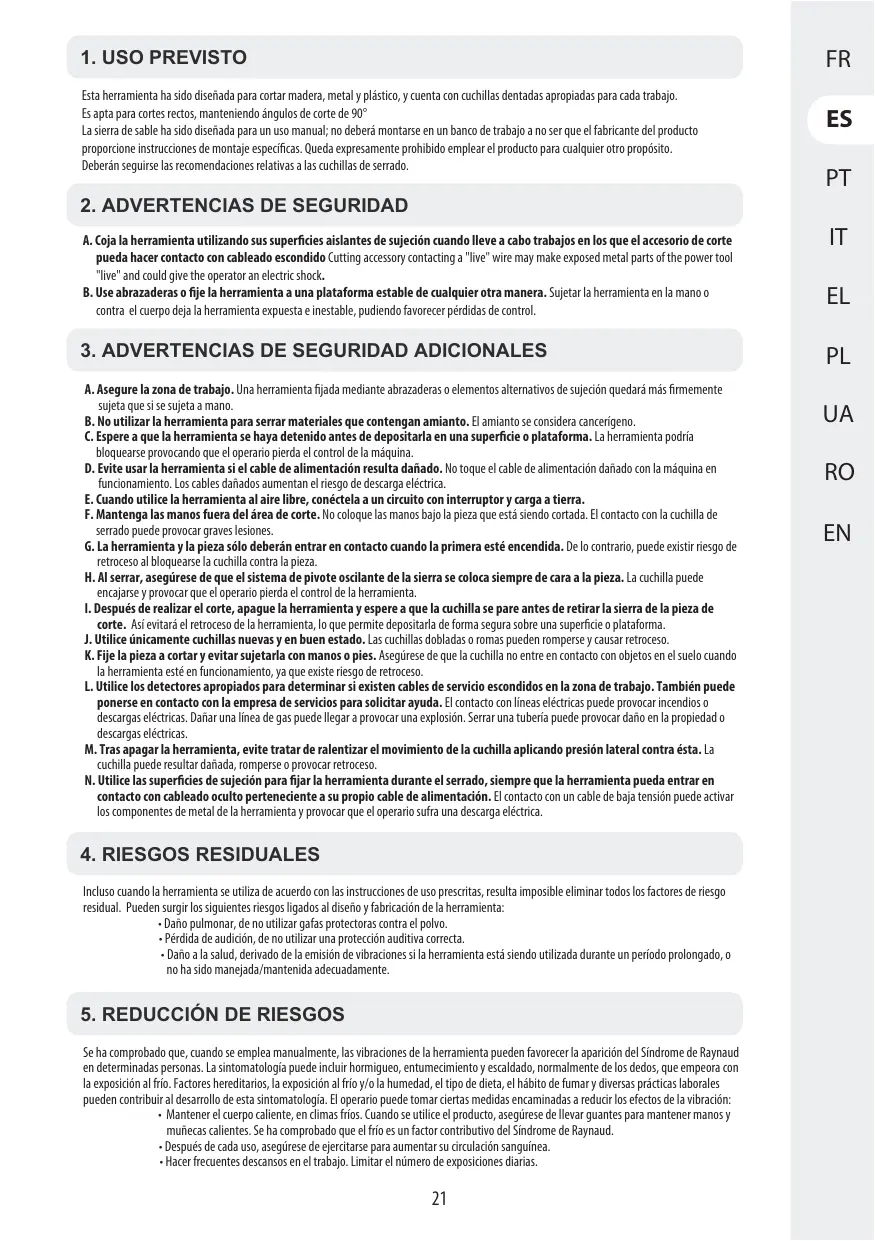20VRPS2-180.1 - Sierra de sable inalámbrica DEXTER - Manual de uso y guía de instrucciones gratis