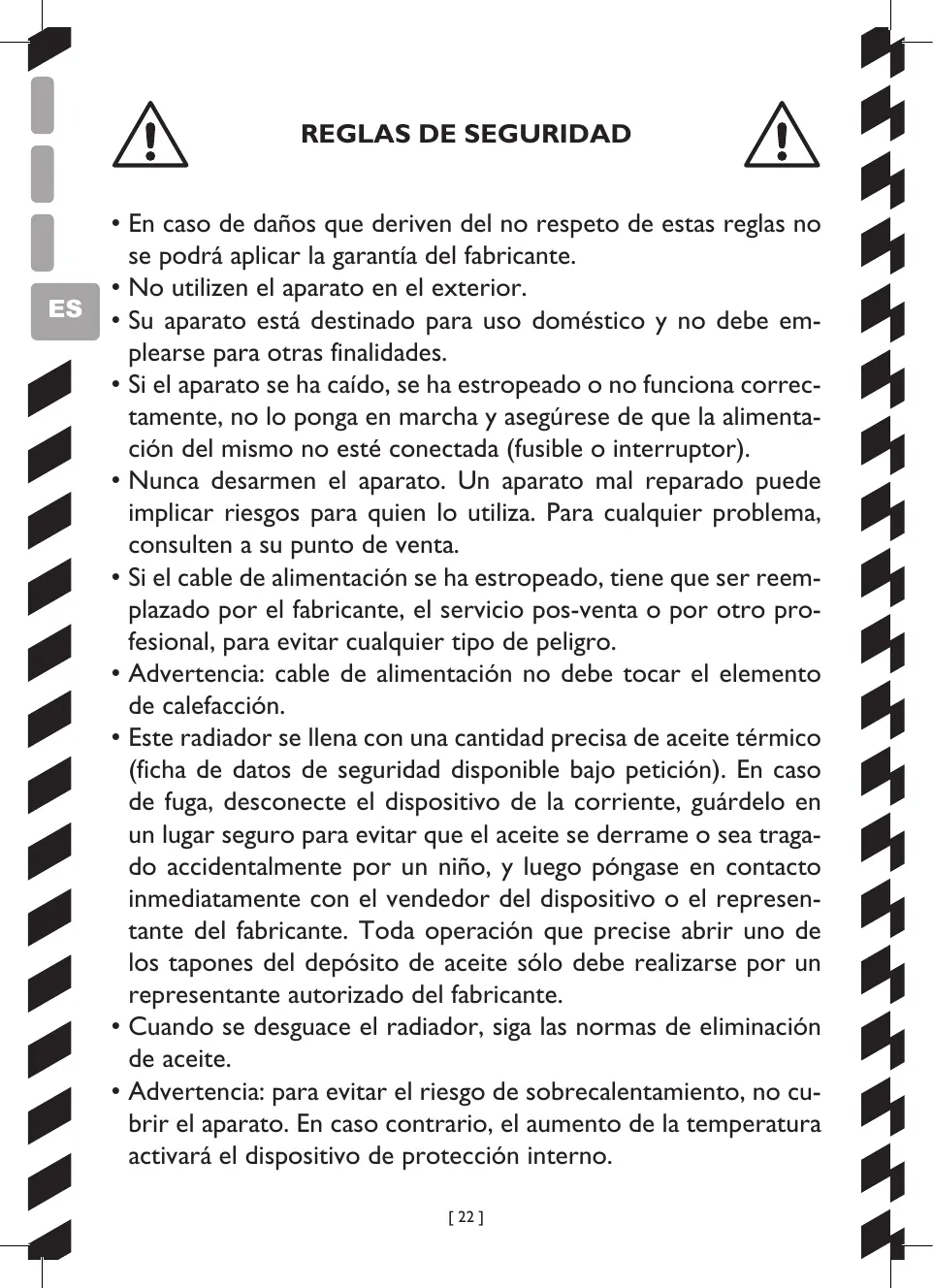+ En caso de daños que deriven del no respeto de estas reglas no se podrä aplicar la garantia del fabricante.