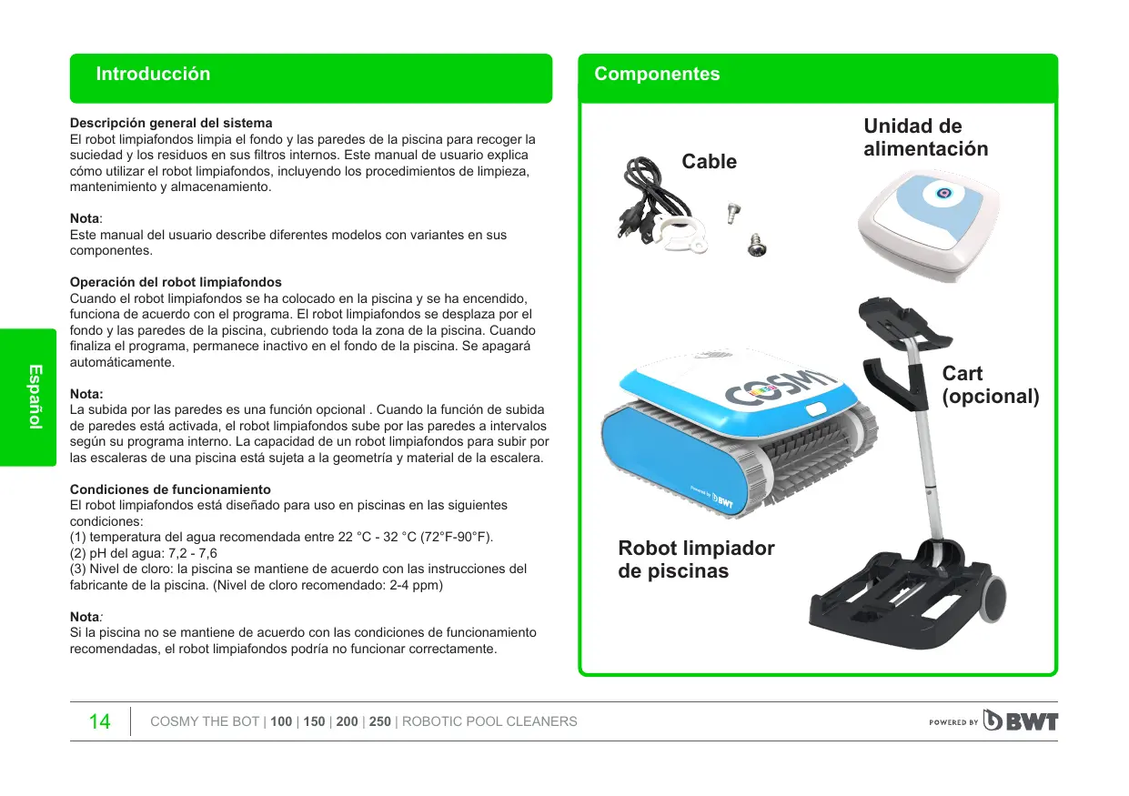 COSMY 100 / 150 / 200 / 250 - Robot de piscina BWT - Manual de uso y guía de instrucciones gratis