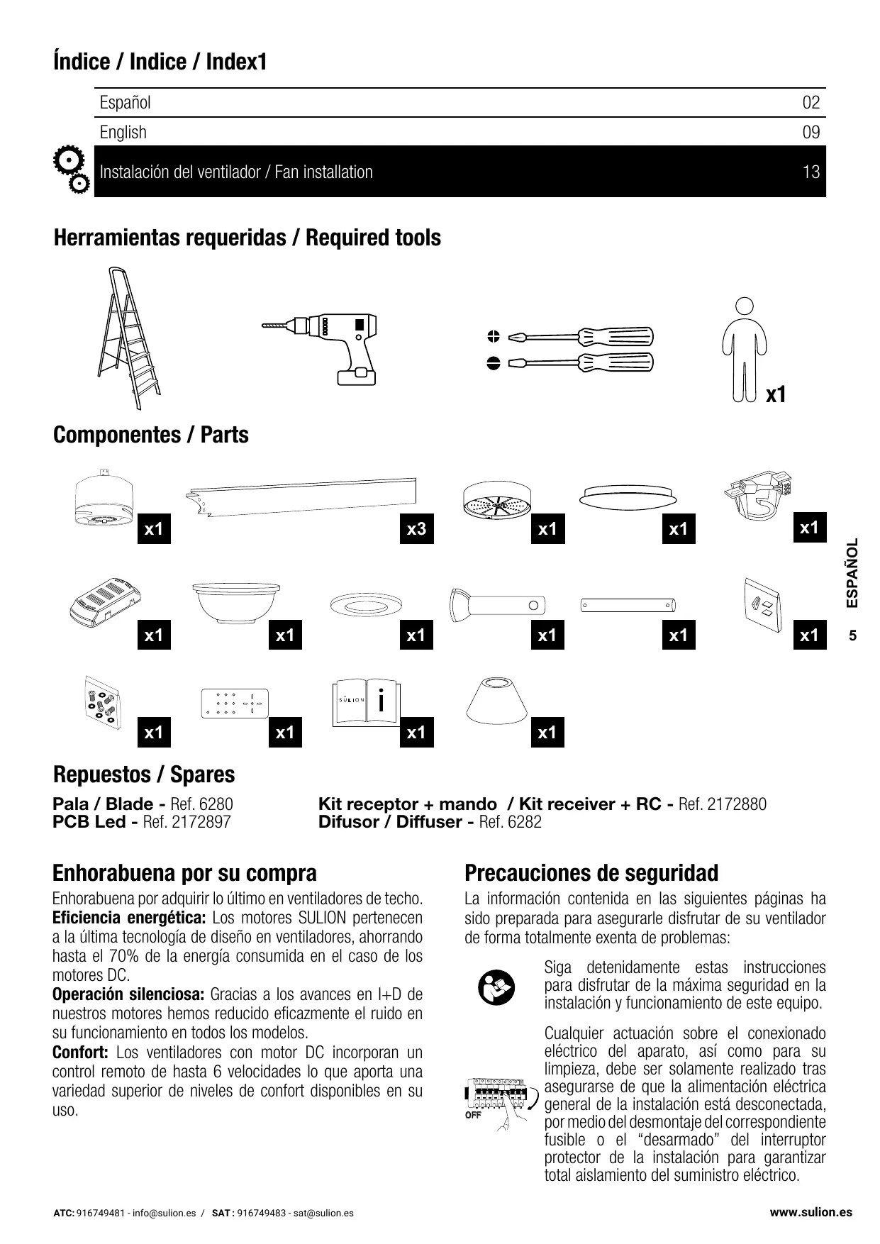 Enhorabuena por adquirir lo ültimo en ventiladores de techo. Eficiencia energética: Los motores SULION pertenecen a la ültima tecnologia de diseño en ventiladores, ahorrando hasta el 70% de la energia consumida en el caso de los motores DC.