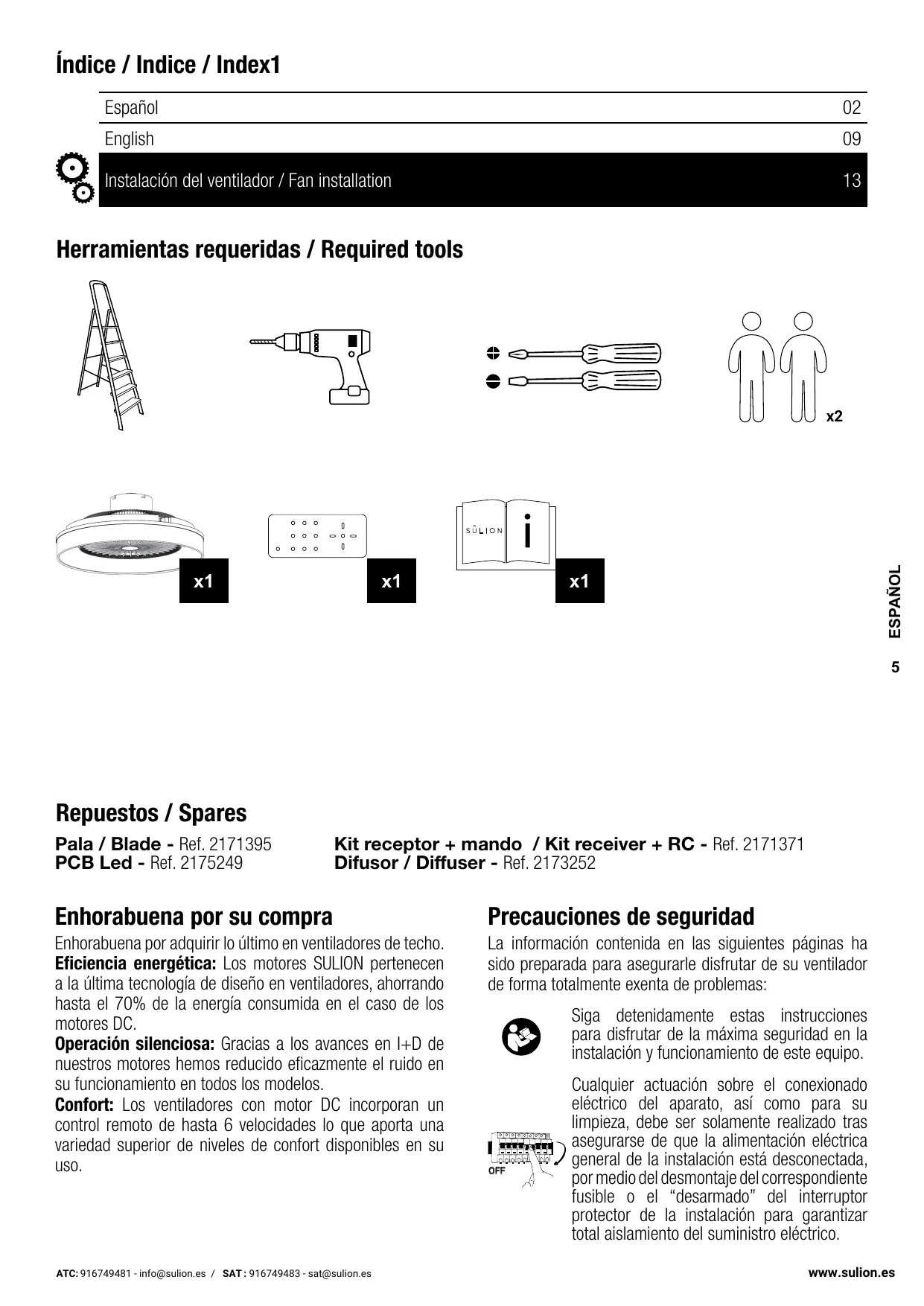 INDRI - Ventilador de techo SULION - Manual de uso y guía de instrucciones gratis