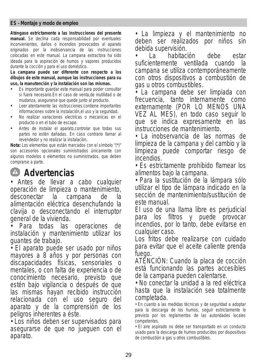 «N'uëlisez jamais la hotte sans la grille montée correctement! + La hotte ne doit JAMAIS être utilisée comme une surface d'appui, sauf indication expresse.
