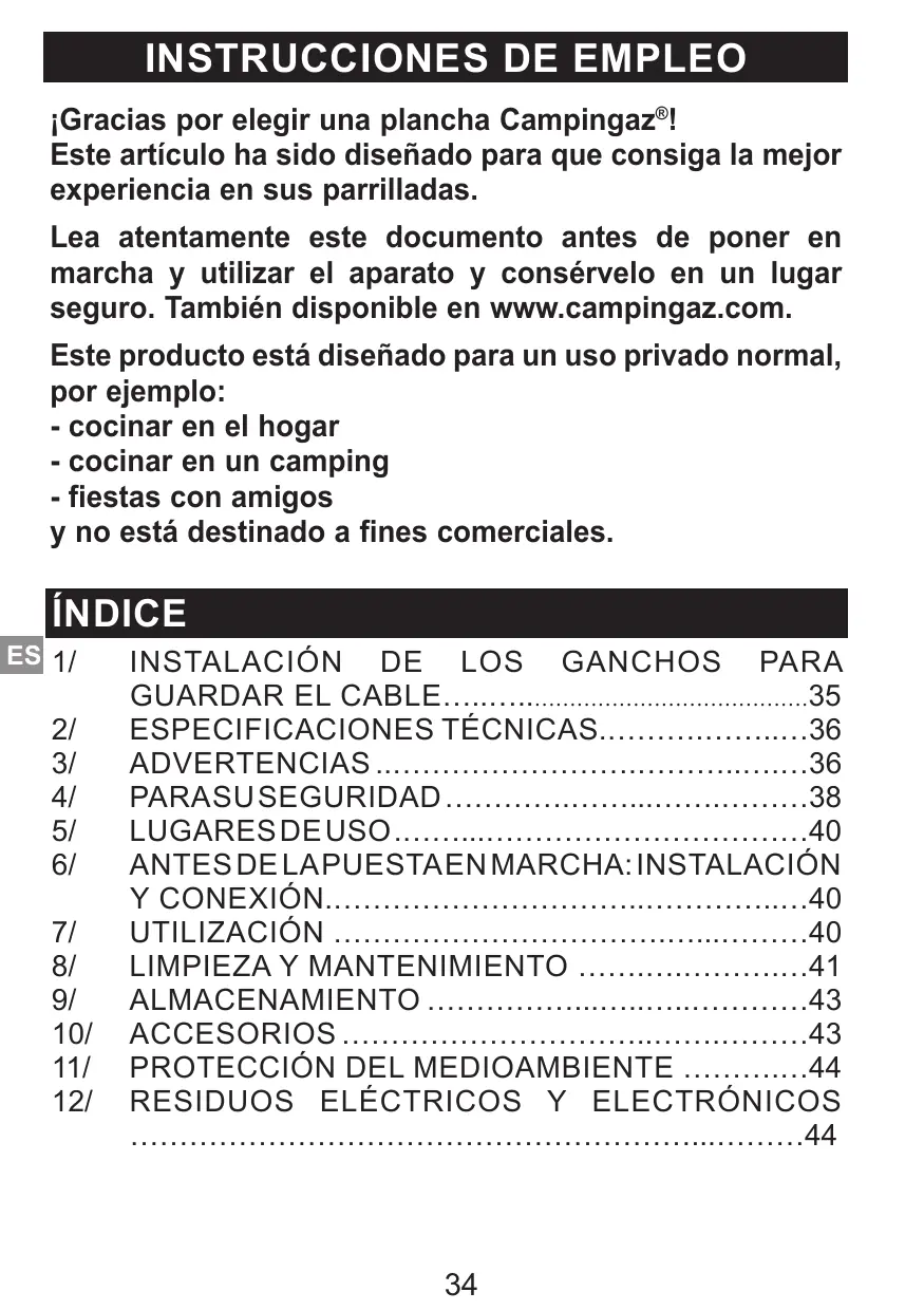 Descarga las instrucciones para tu Plancha en formato PDF gratis! Encuentra tus instrucciones 1XD - CAMPINGAZ y toma tu dispositivo electrónico nuevamente en la mano. En esta página están publicados todos los documentos necesarios para el uso de su dispositivo. 1XD de la marca CAMPINGAZ.