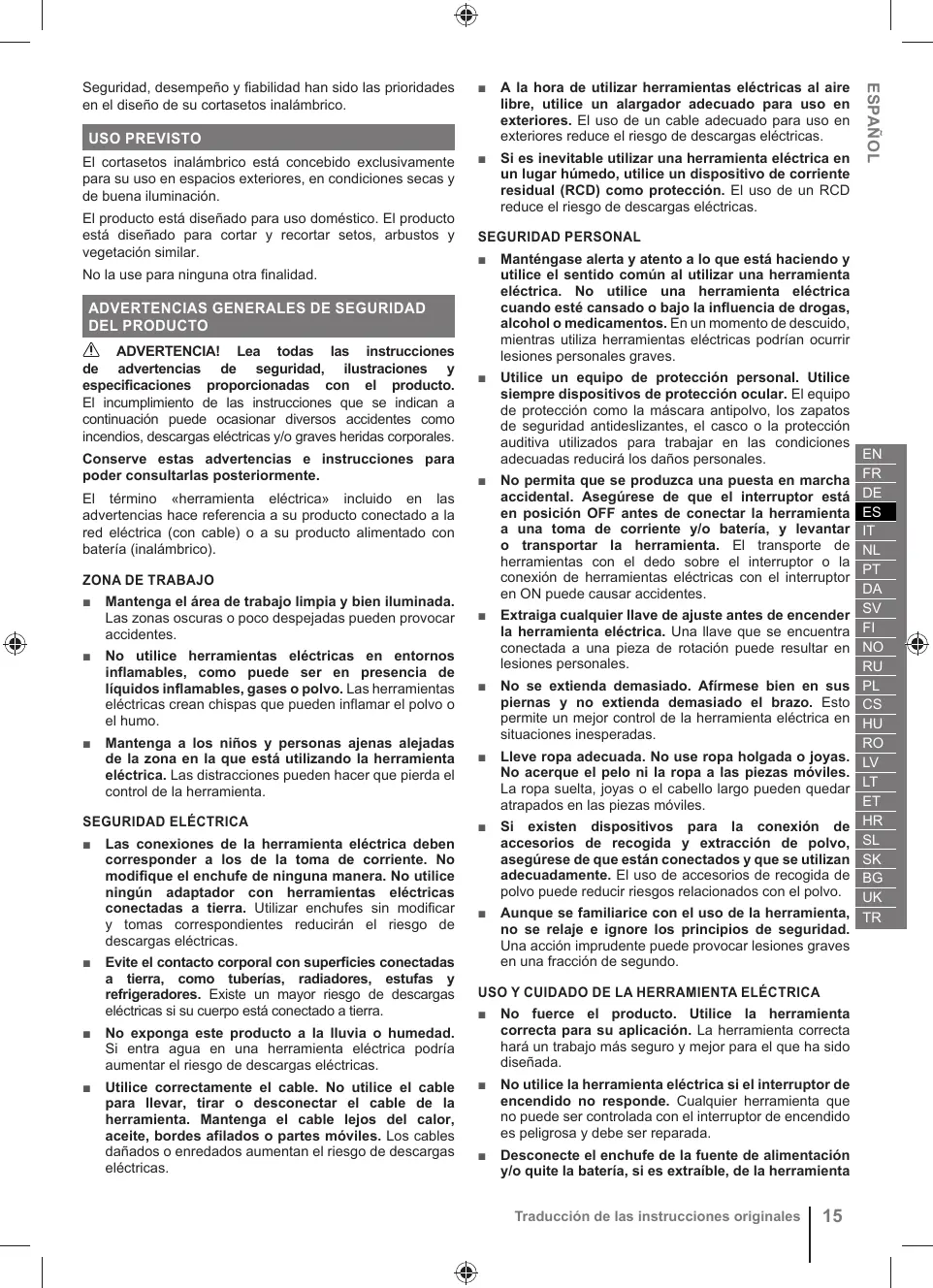 | Funciones principales | Corte de setos, poda de arbustos |