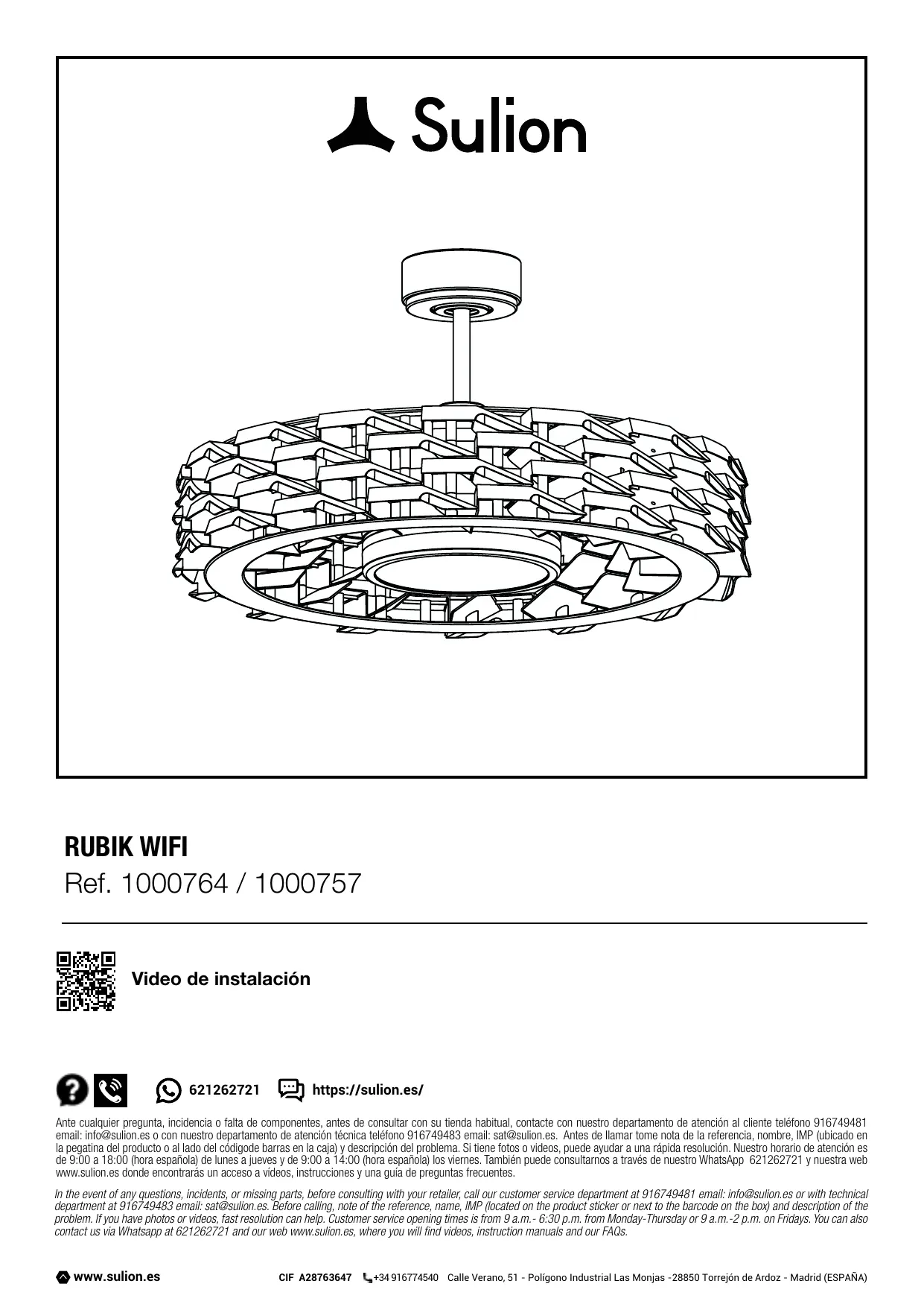 RUBIK - Admirador SULION - Manual de uso y guía de instrucciones gratis