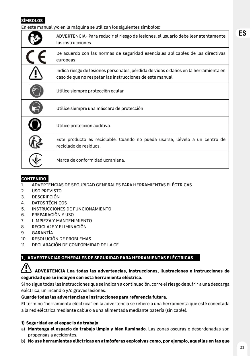 Cualquier persona que entre en la zona de trabajo deberä llevar ropa de protecciôn personal. Se pueden partir trozos de La pieza de trabajo o saltar chispas que también pueden causar Lesiones fuera de la zona de trabajo directa.