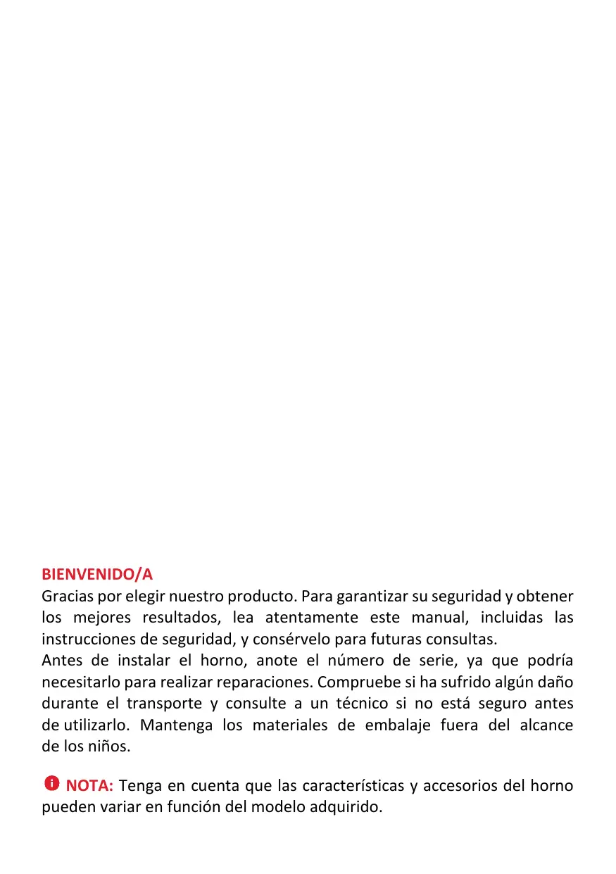 | Tipo de producto | Horno empotrado |