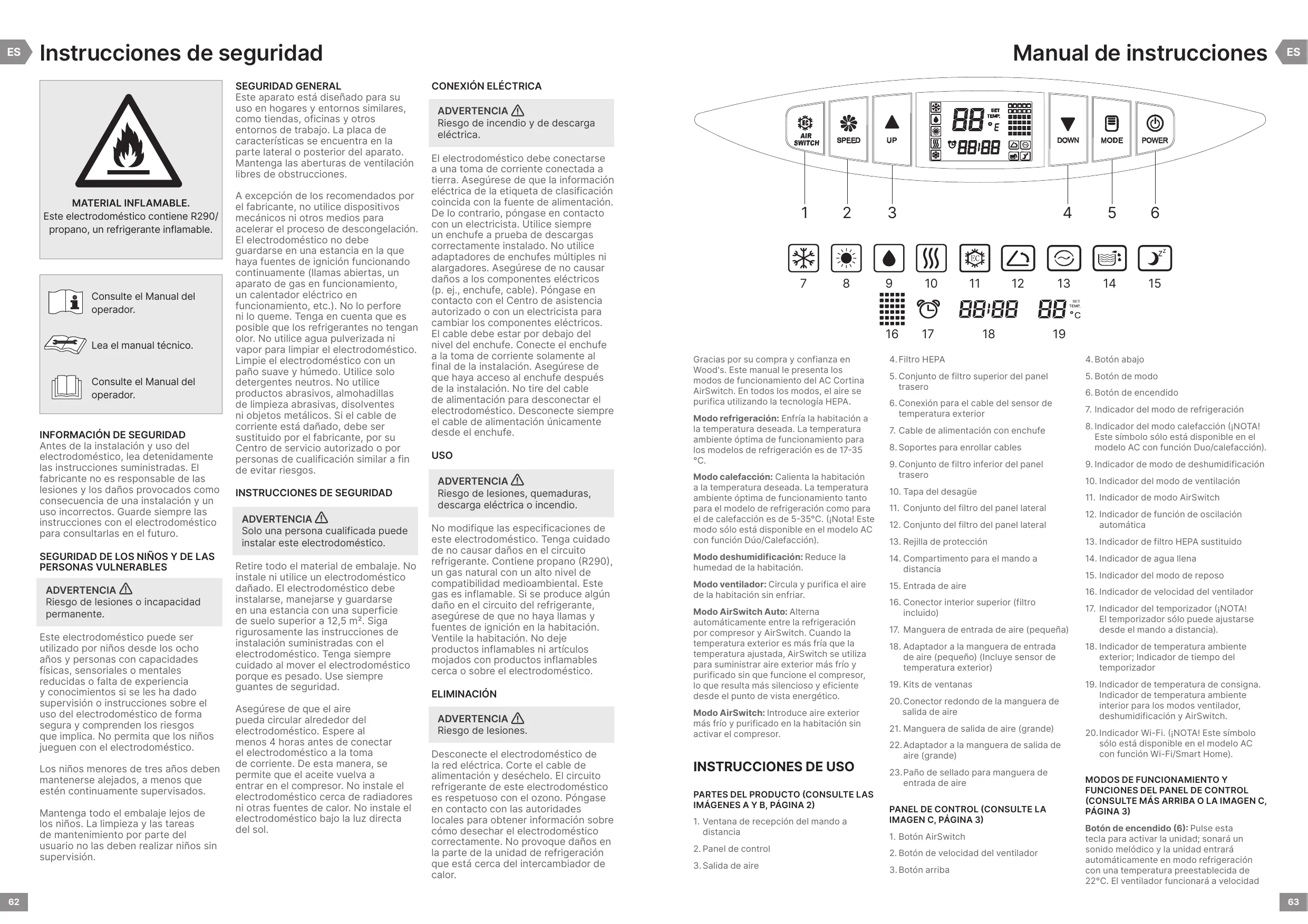 2. Todas las piezas dejan de funcionar cuando la unidad estä apagada, y la ventana de salida de aire se cerraré automäticamente.