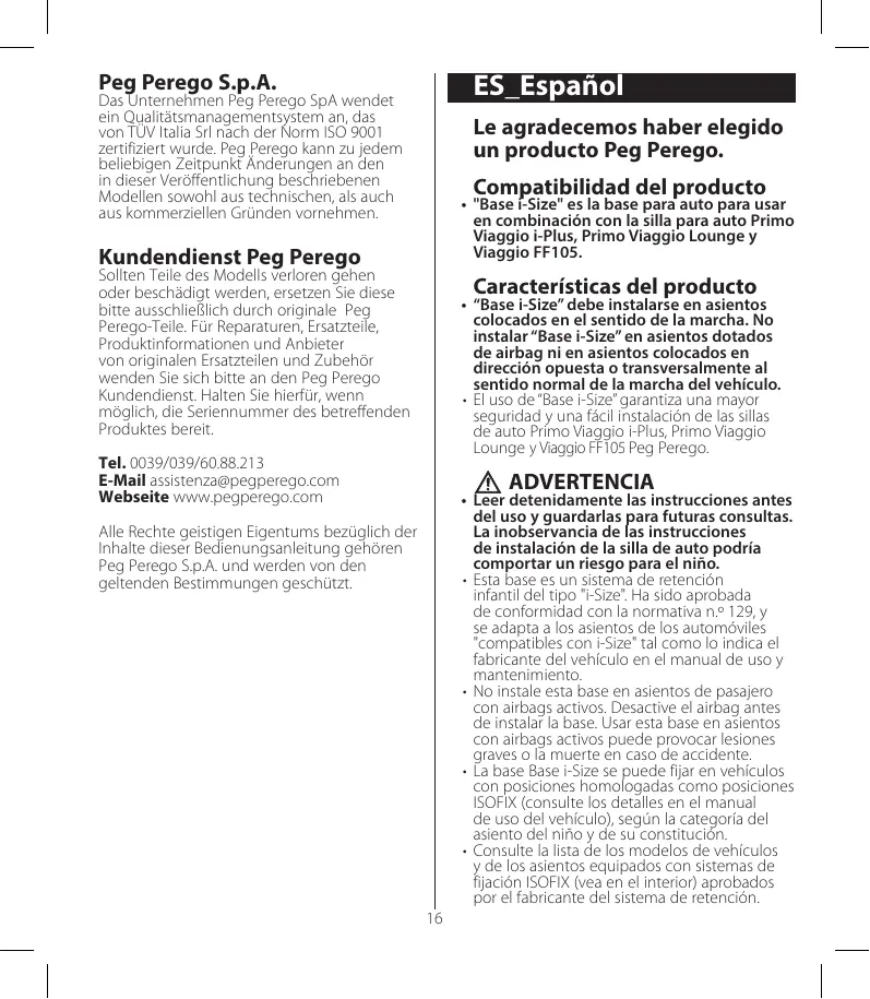 Base i-Size - Asiento de coche PEG PEREGO - Manual de uso y guía de instrucciones gratis