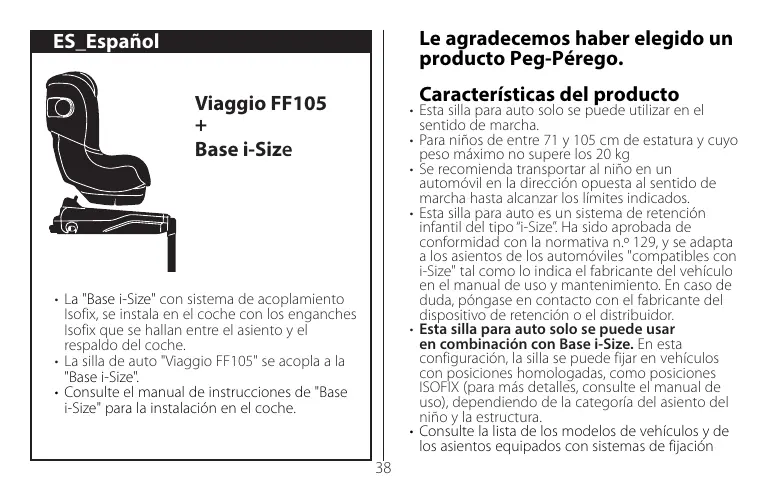 Descarga las instrucciones para tu Asiento de coche en formato PDF gratis! Encuentra tus instrucciones Viaggio FF105 - PEG PEREGO y toma tu dispositivo electrónico nuevamente en la mano. En esta página están publicados todos los documentos necesarios para el uso de su dispositivo. Viaggio FF105 de la marca PEG PEREGO.