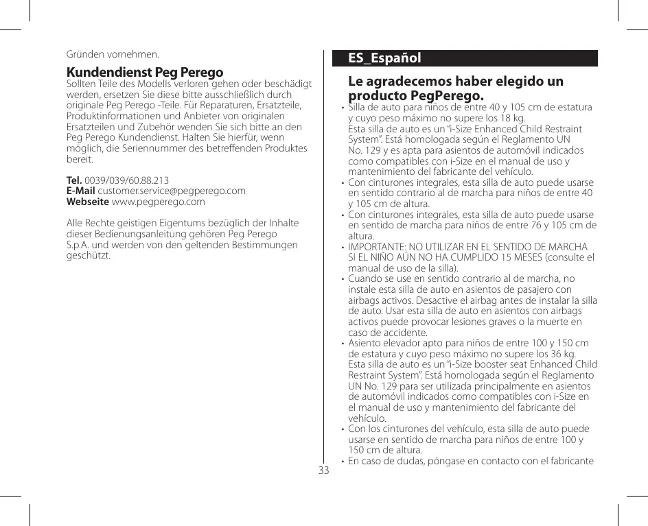 Descarga las instrucciones para tu Asiento de coche en formato PDF gratis! Encuentra tus instrucciones Primo Viaggio 360 EVO - PEG PEREGO y toma tu dispositivo electrónico nuevamente en la mano. En esta página están publicados todos los documentos necesarios para el uso de su dispositivo. Primo Viaggio 360 EVO de la marca PEG PEREGO.