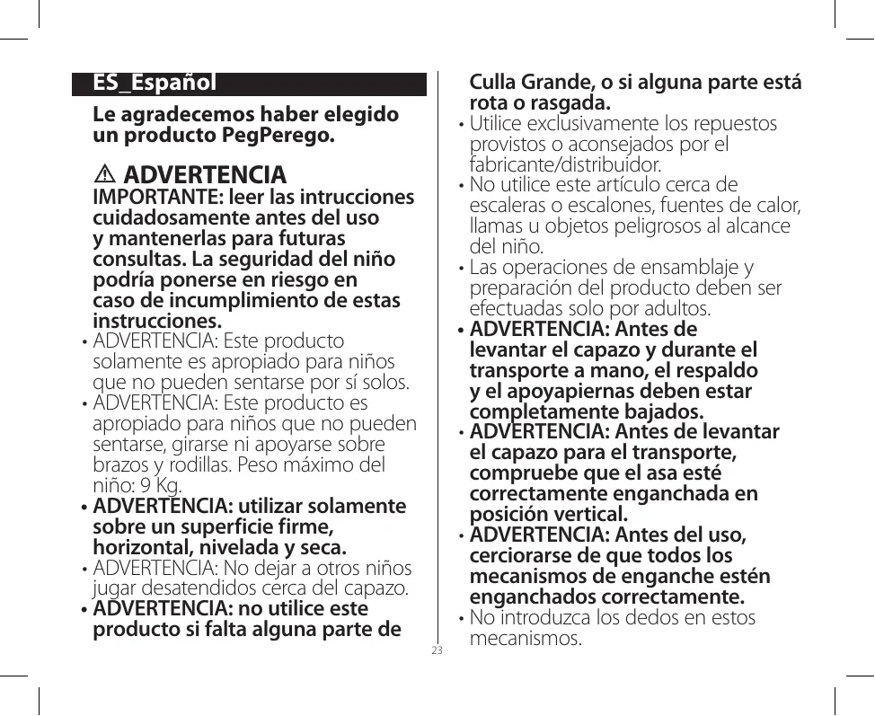 Encuentra gratis el manual del aparato Culla Grande PEG PEREGO en formato PDF.