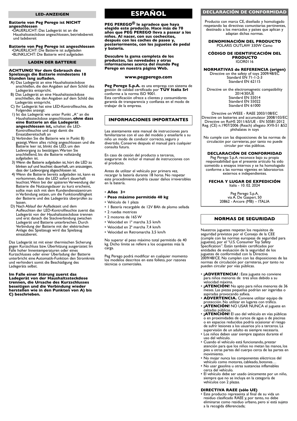 Encuentra gratis el manual del aparato Polaris Outlaw 330W Camo PEG PEREGO en formato PDF.