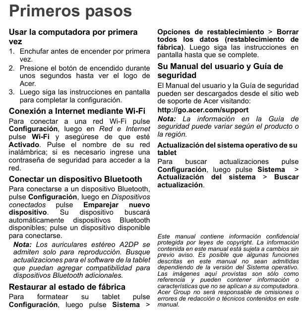 M10-11 - Tableta Iconia - Manual de uso y guía de instrucciones gratis