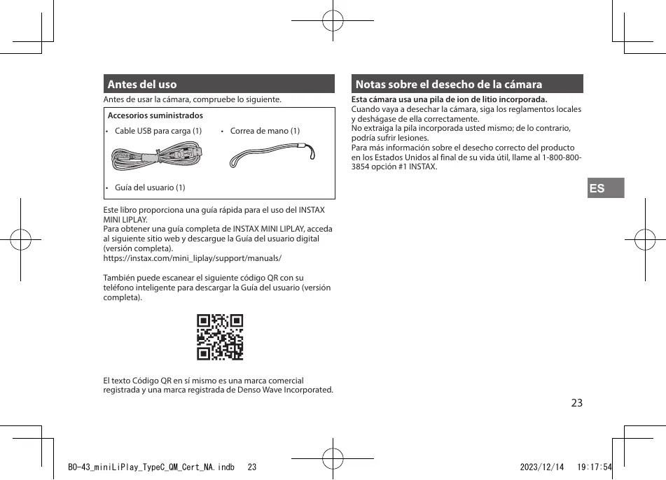 FI043 - Cámara instantánea FUJIFILM - Manual de uso y guía de instrucciones gratis