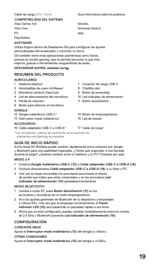 Encuentra gratis el manual del aparato ARCTIS NOVA 5X STEELSERIES en formato PDF.
