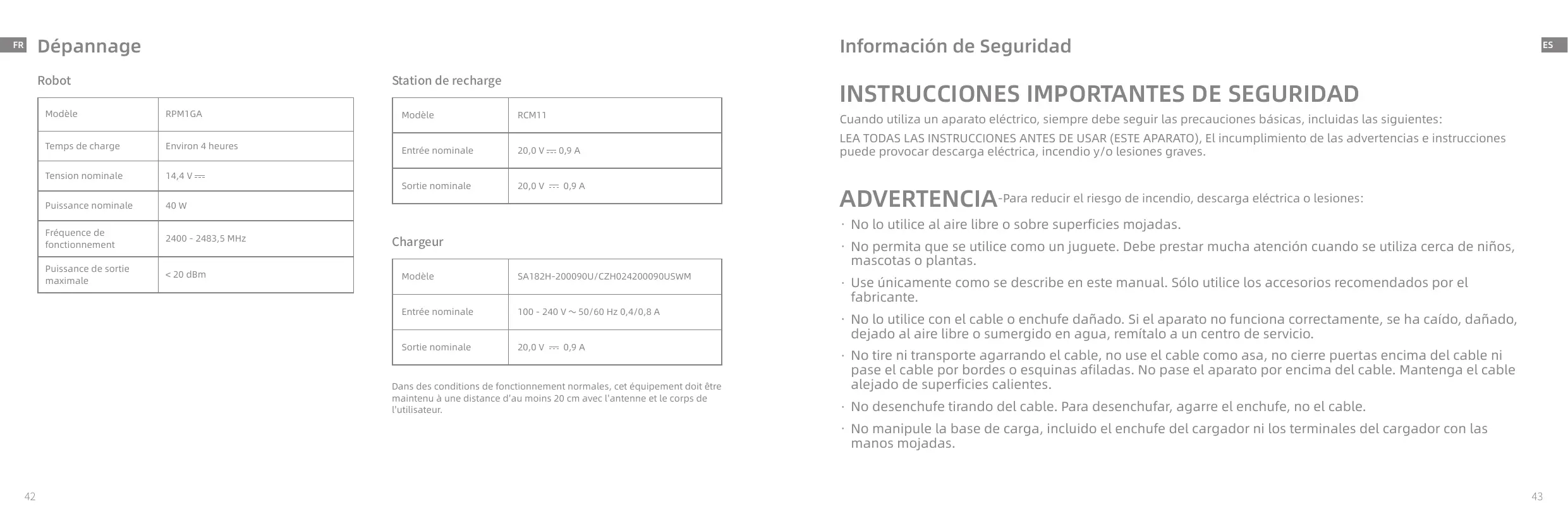 -À utiliser uniquement avec la station d'accueil RCM11 de Dreame Trading (Tianjin) Co., Ltd. À utiliser uniquement avec Le chargeur Dongguan Sunun Power Co., Ltd SA182H-200090Ù ou le chargeur Chanzeho