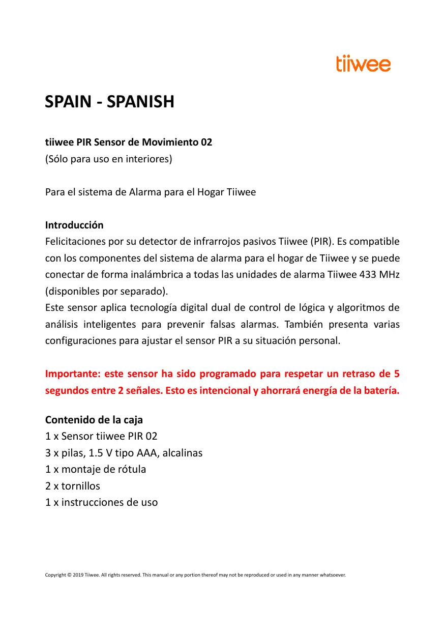 Encuentra gratis el manual del aparato PIR sensor 02 Tiiwee en formato PDF.